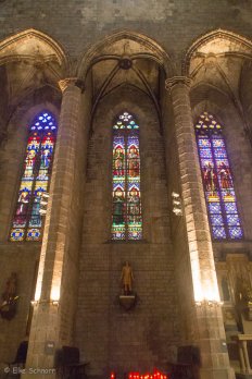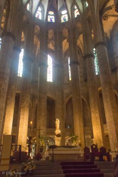 Die Kirche, die der Schutzheiligen der Seeleute gewidmet ist, gilt als schönstes Beispiel katalanischer Gotik und bei den Einheimischen genießt Santa Maria del Mar als „Kathedrale des Volkes“ eine höhere Verehrung als die Kathedrale selbst. Und es ist immerhin die erste Kirche, in der wir ein Schiff gesehen haben