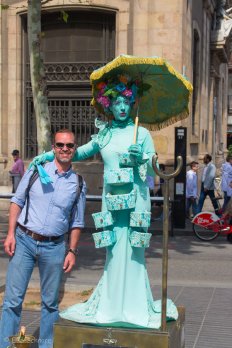 Anschließend machen wir uns dann auf zur letzten Etappe: Einmal die Rambla rauf und runter. Wir hatten ja gehofft, dass heute — da die Osterfeiertage vorbei sind — dort etwas weniger Betrieb herrscht — aber da war wohl der Wunsch Vater des Gedanken…