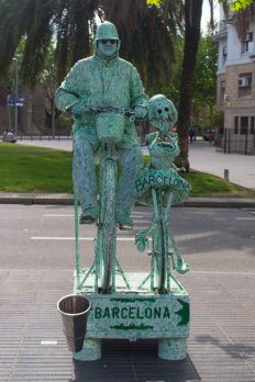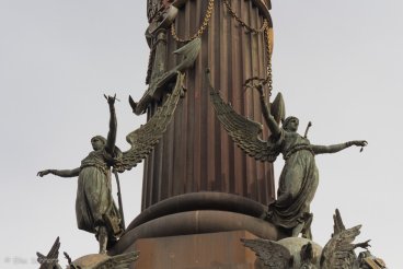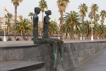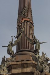 Am unteren Ende der Flaniermeile erreichen wir dann das Kolumbusdenkmal. Die bronzene Kolumbusstatue auf einer 50 Meter hohen Eisensäule erinnert an die Audienz, die das damalige Königspaar dem berühmten Entdecker nach seiner Heimkehr in Barcelona gewährte. Kolumbus zeigt mit seinem — immerhin einen halben Meter langen! — Finger allerdings nicht wirklich in Richtung Neue Welt.