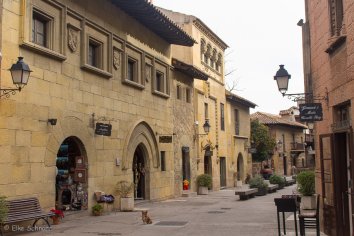 Wir steigen wieder in einen „Roten Bus“ und setzen unsere Tour fort. Nächster Halt wäre das Poble Espanyol — ein Freilichtmuseum am Fuße des Montjuïc, das 1929 aus Anlass der Weltausstellung erbaut wurde. Da wir dieses aber bereits im Januar angeschaut haben, als wir wegen eines Gerichtstermins für einen Tag in Barcelona waren, überspringen wir diese Station auf der heutigen Rundtour — die Bilder möchte ich Euch jedoch nicht vorenthalten: