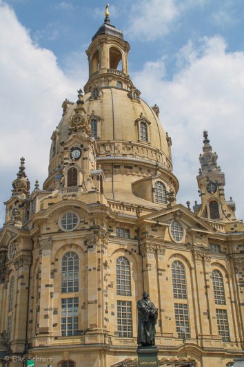 Wir kommen vorbei an der Frauenkirche, verschieben einen Besuch aber vorerst auf später, da wir Tickets für das Grüne Gewölbe mit einem festen Zeitraster haben und diese verfallen, wenn wir nicht pünktlich da sind. Ein paar erste Bilder werden aber trotzdem schon mal geknipst: