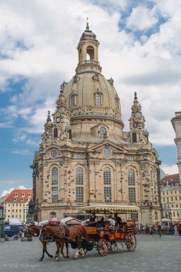 Die imposante Kirche aus Sandstein gilt als eines der Wahrzeichen der Stadt Dresden. Im zweiten Weltkrieg fast vollständig zerstört, wurden die Ruinen zu DDR-Zeiten als Mahnmal belassen. Nach der Wende wurde jedoch mit dem Wiederaufbau begonnen und seit 2005 erstrahlt das Meisterwerk wieder in neuer Pracht.