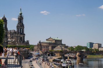 Da der Gottesdienst noch immer andauert, als wir wieder unten sind, schlendern wir für eine Runde über die Brühlsche Terrasse, bewundern die Prachtbauten am anderen Elbufer und besorgen uns schon mal Schiffstickets für die Elbtallinie, mit der wir morgen in die Sächsische Schweiz fahren wollen.