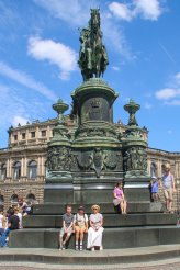 Wir wollen heute Nachmittag an einer Führung in der Semperoper teilnehmen und schon mal Tickets dafür besorgen. Leider sind wir jedoch zu spät dran — für heute ist bereits alles ausgebucht und so bleibt uns nur der Anblick von außen, den wir ja von der Radeberger Brauerei-Werbung bereits nur zu gut kennen.