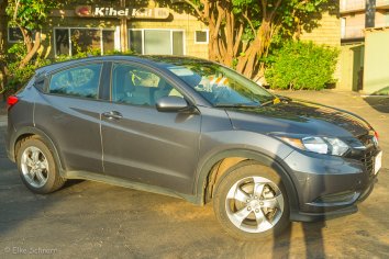 Es gibt genau drei Autos: einen Truck, der uns hier auf Maui ziemlich unpassend erscheint und der wahrscheinlich ordentlich was wegschluckt, einen grauen Hyundai, bei dem wir uns schon etwas wundern, wie der es hierher in der SUV Reihe geschafft hat und ein ziemlich abgewrackter Jeep.