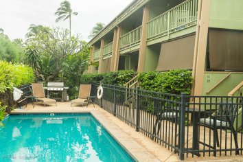 Die Anlage mit mehreren kleinen Wohnungen liegt direkt am Meer und gefällt uns sehr gut. Unser Appartement Nummer 5 ist nett eingerichtet und bietet alles wir brauchen. Es gibt einen Pool, Waschmaschinen und einen kleinen Bereich zum Grillen direkt am Beach. Nicht ganz so großzügig wie die Suite in Kauai aber wir sind trotzdem sehr zufrieden.