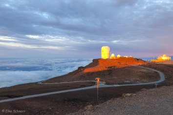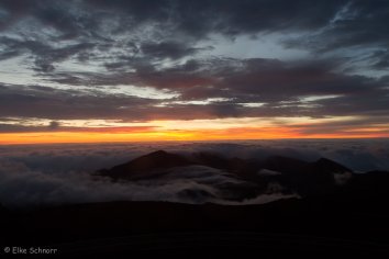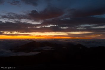 Als wir eine halbe Stunde später im Auto sitzen, ist es natürlich noch stockdunkel, aber das ist ja auch der Sinn der Sache — schließlich wollen wir den Sonnenaufgang heute oben auf dem Haleakala erleben. Und bis dahin sind es jetzt knapp 90 Minuten Fahrt durch die Nacht.
