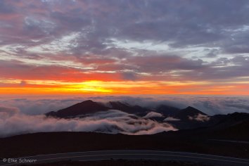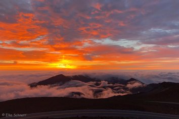 An der Einfahrt zum Nationalpark wird dann unser Name mit einer Liste abgeglichen — man darf nämlich vor 7:00 Uhr nur in den Park, wenn man sich dafür vorher ein entsprechendes Permit besorgt hat. 150 Autos werden pro Tag zugelassen — sicher eine Frage der Parkplatzkapazität. Wir dürfen jedenfalls passieren und sind gegen 4:30 Uhr am Summit — etwas früher als geplant, weil es auf der Straße wie am Schnürchen lief.
