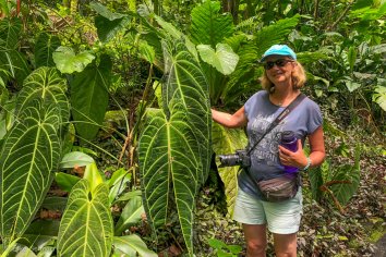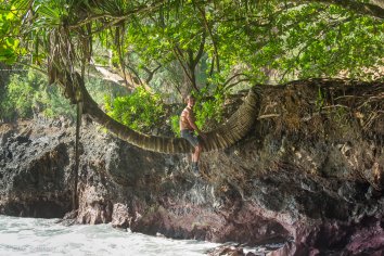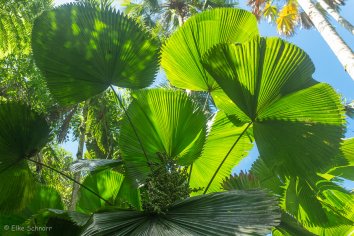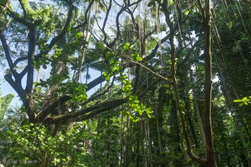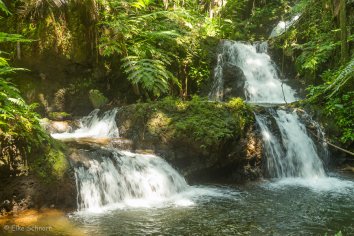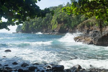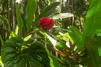 Wir kommen vorbei an gigantischen Jackfrucht-Bäumen, Riesenbambus und Ananaspflanzen, über gluckernde Bäche und an idyllischen Wasserfällen vorbei. Dann und wann gibt der Regenwald auch tolle Blicke über den Ozean und die felsige Küste frei und natürlich kommen auch Orchideen-Liebhaber hier voll auf ihre Kosten.