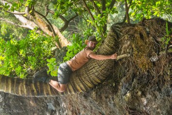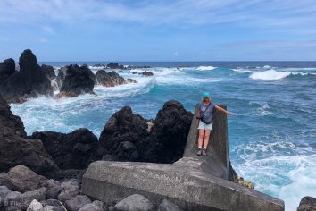 Unseren ersten Stopp legen wir an der Onomea Bay ein, wo ein netter kurzer Trail hinunter zur Küste führt. Den lassen wir uns natürlich nicht entgehen — er bietet nette Ausblicke und einen Männerspielplatz: