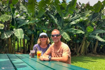 Wir beobachten ein paar Zipliner, treffen unterwegs Mangusten und ein Wildschwein und haben einen tollen Ausblick auf die Umauma Falls. Und natürlich folgen wir dem offiziellen Hinweis und lassen es uns nicht nehmen, zumindest eine Kokosnuss abzupflücken. Damit hat sich der Eintritt ja schon fast wieder gerechnet.