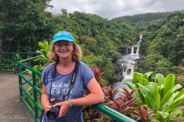 Auf der weiteren Fahrt nach Norden kommen wir an den Akaka Falls vorbei, wo wir natürlich auch anhalten. Schon weit vor dem eigentlich Parkplatz stehen ziemlich viele Autos an der Straße, weswegen wir annehmen dass dort wohl kein Platz mehr frei sein wird.