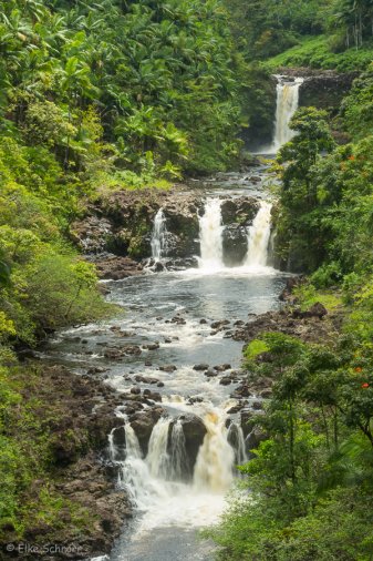 Am Hinweisschild zur Umauma Experience biegen wir ab. Aber nicht, um dort an einer Zipline Tour teilzunehmen — das ist uns mit knapp 300 USD pro Person schlichtweg zu teuer — sondern um die mehrstufigen Wasserfälle anzuschauen, die sich hier auf Privatgelände befinden.