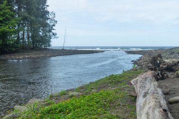 Wir laufen ein bisschen am Strand entlang, aber der Himmel hat sich mittlerweile ziemlich zugezogen und die Sicht ist nicht besonders. Und am Fluss ist dann auch endgültig Schluss für uns. Für eine Durchquerung reicht uns die Zeit einfach nicht mehr.