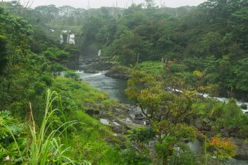 Den Stopp an den Rainbow Falls, die unterwegs an der Strecke liegen, schenken wir uns allerdings, weil der Schauer wohl etwas länger ausfällt — oder weil wir noch nicht weit genug von Hilo entfernt sind.