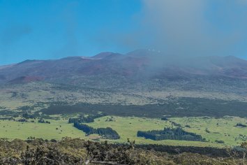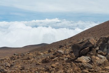 Auf der Weiterfahrt bessert sich das Wetter dann zunehmend und als wir etwa 1400 Höhenmeter erreicht haben, durchstoßen wir die Wolkendecke. Ein strahlend blauer Himmel zeigt sich und der Mauna Kea liegt in seiner ganzen Schönheit frei vor uns — also haben wir alles richtig gemacht ![]()