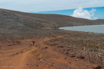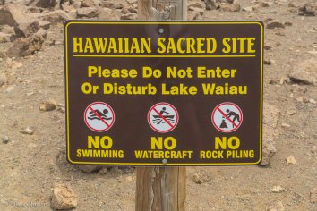 Zum einen natürlich wegen der Temperaturen in dieser Höhe, aber zum anderen auch angesichts der Tatsache, dass die Hawaiianer hier im See die Nabelschnüre ihrer Babys und die Knochen bzw. Asche von verstorbenen Familienmitgliedern versenken.
