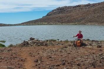 Letztlich verlassen wir uns aber doch auf die Anzeige im Jeep, die im Moment besagt, dass der Sprit noch 250 km reicht und auf unseren gesunden Menschenverstand — schließlich brauchen wir zum bergab fahren ja später kaum noch Sprit.