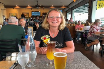 In Hilo fahren wir direkt kurz am Pineapple’s vorbei in der Erwartung, dass es dort eine längere Wartezeit geben wird. Und es klappt tatsächlich wie erhofft: in 30 Minuten haben sie einen Tisch für uns. Also geht es kurz zurück zum B&B, dort machen wir uns frisch und spazieren dann in aller Ruhe zum Restaurant, wo wir direkt an unseren Tisch können — perfektes Timing ![]()