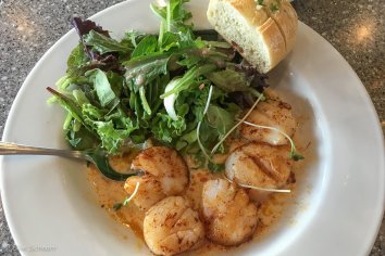 Wir teilen uns Scallops als Vorspeise, dann probiere ich den Coconut crusted Catch of the day und Andreas nimmt einen Burger. Dazu gibt’s ein Bierchen und für mich einen Mojito. Beides ist sehr gut und die Stimmung im Restaurant mit Live Musik ist toll.