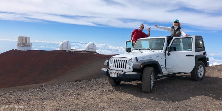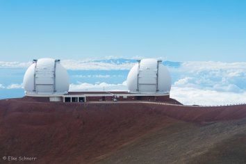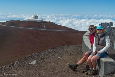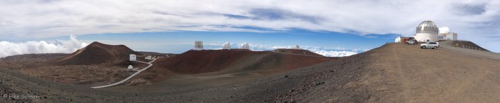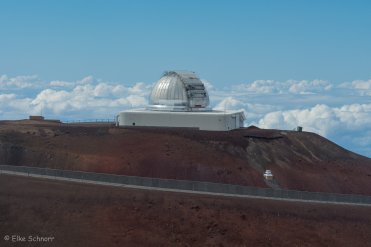 So laufen wir nur ein bisschen herum und schauen uns um. Hier oben auf dem Mauna Kea stehen einige Sternwarten zum Erkunden des Weltalls. Für Stern- und Himmelsbeobachtungen ist der Mauna Kea einer der besten Orte auf dem Planeten, was zum einen an der Höhe und der fehlenden Luftverschmutzung und zum anderen an der Lage im Pazifik liegt.