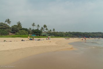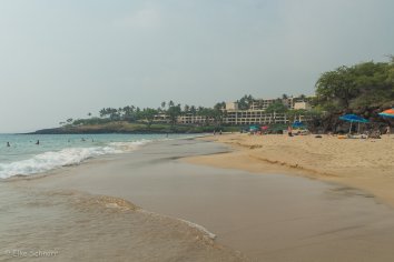 Der weitläufige Strand mit dem goldenen Puderzuckersand gefällt uns dann richtig gut. Alles ist sehr gepflegt und nicht annähernd so voll wie wir befürchtet haben.