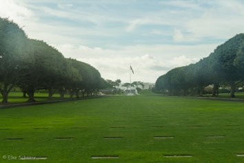 Den ersten Stopp legen wir am National Cemetery of the Pacific im Punchbowl Crater ein — einem der größten Militärfriedhöfe der USA. Hier sind mehr als 37.000 Soldaten beerdigt — unter anderem von den Kriegen in Korea, Vietnam und dem zweiten Weltkrieg.