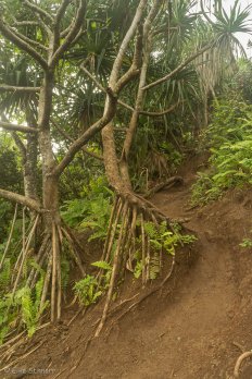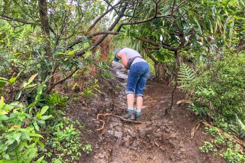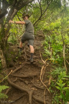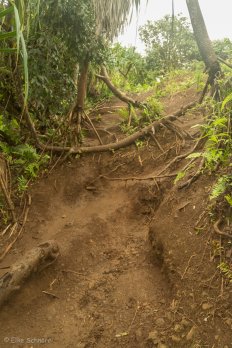 Auch dieser Aufstieg ist ziemlich steil und der Boden ist recht glatt vom Regen der letzten Tage. Wir müssen also wieder ordentlich aufpassen wo wir hintreten — aber es gibt zum Glück überall genug Wurzeln und Äste zum Festhalten.