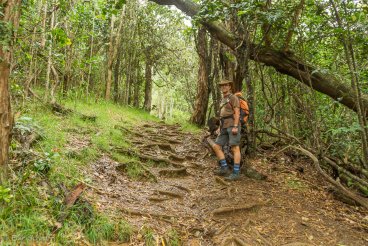 Dann folgen drei harte Meilen stetigen Aufstiegs durch den Wald, die nicht mehr wirklich viele Ausblicke bieten, dafür aber mit den vielen Höhenmetern (zumindest mir) etwas in die Knochen gehen, so dass zum Fotografieren die Muße fehlt…