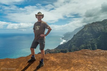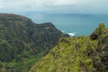 Bevor wir nach zwei weiteren Meilen an der Wegkreuzung auf dem Awa’awa’puhi Trail zurücklaufen, machen wir natürlich noch den Abstecher zum Viewpoint — die Aussicht auf die Napali Coast kann man sich doch schließlich nicht entgehen lassen.