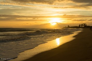 Der Kekaha Beach ist irgendwie anders als alle Strände die wir bisher auf Hawaii kennengelernt haben. Es gibt keinerlei Schilder mit ellenlangen Listen, was alles verboten ist — im Gegenteil. Die Einheimischen fahren mit ihren Jeeps direkt bis an’s Meer, machen Lagerfeuer und grillen, niemand hat etwas gegen Hunde und sogar Bier wird hier öffentlich getrunken.