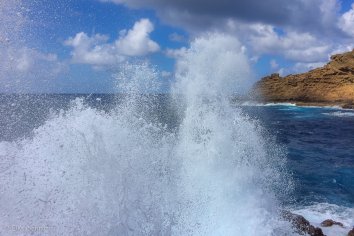 Wir parken unser Auto und streben dann in Richtung Meerespromenade. Hier beobachten wir eine ganze Weile die tobende Brandung und die schäumenden Wellen, die im Kontrast zu den schwarzen Lavabecken einen faszinierenden Anblick bliden.