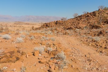 Wir entledigen uns der Wanderschuhe und der qualmenden Socken und verlassen gegen 14:15 Uhr das Brandberg-Gebiet in Richtung Uis.