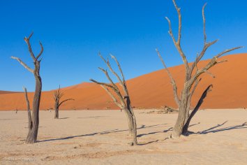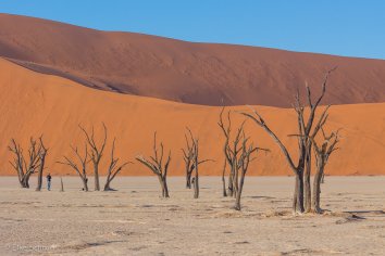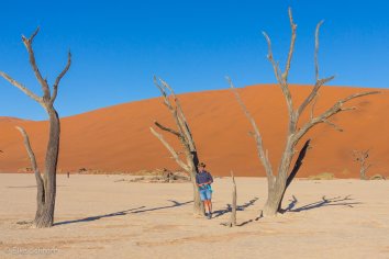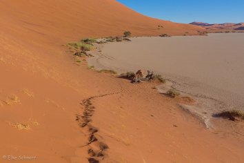Im Dead Vlei herrscht ordentlich Andrang und es ist nicht ganz einfach, ein paar Fotos ohne fremde Menschen darauf zu bekommen. Auch sind einige Asiatengruppen da, die man wie so oft viel früher hört als man sie sieht. Schade, dass wir die schöne Szenerie nicht mit ein wenig mehr Ruhe genießen können.