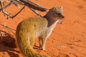 Dabei entdecken wir neben den allgegenwärtigen Springböcken diesmal auch noch eine Fuchsmanguste: