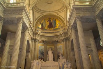 So müssen wir uns mit dem Anblick des monumentalen Äußeren und der Haupthalle begnügen, was aber an sich schon ein Erlebnis ist — denn nicht umsonst war das Panthéon bis zum Bau des Eiffelturms der Blickpunkt von Paris.
