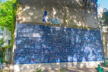 Am Place des Abbesses kommen wir an der berühmten „Ich-liebe-Dich-Mauer“ vorbei.