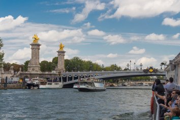Hier kommen wir an der Brücke d’Iéna vorbei, wo unter anderem die Schiffe der Batobus-Linie abfahren. Diese Schiffe fahren acht Stationen in der Nähe der wichtigsten Stadtviertel und Baudenkmäler von Paris an und man kann unterwegs beliebig oft aus- und einsteigen.
