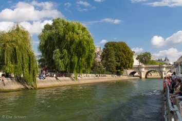 Wir buchen eine Sightseeing-Tour und gleiten dann eine Stunde lang unter zahlreichen Brücken entlang. Dabei ziehen im ruhigen Lauf des Wassers die schönsten Museen und Bauwerke von Paris an uns vorüber, wir lauschen den Erklärungen des Audioguide im Kopfhörer und genießen dabei einfach die Sonne, die das Ganze perfekt macht.