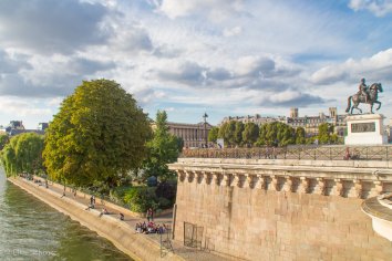 Auf der Brücke treffen wir noch Heinrich IV. hoch zu Ross. Das Reiterstandbild ließ seine Witwe Marie von Medicie nach der Ermordung des Königs aufstellen.