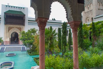 Direkt hinter dem Park stoßen wir auf Frankreichs Hauptmoschee — die Grande Mosquée de Paris. Errichtet im spanisch-maurischen Stil ist sie eines der bedeutenden Bauwerke von Paris.
