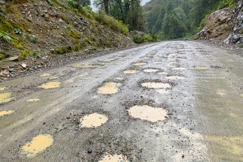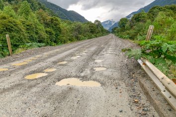 Nach dem Nationalpark Queulat fahren wir heute allerdings in Richtung Süden weiter und der Asphalt weicht mal wieder einer Schotterstraße. Diesmal ist es allerdings eine richtig üble. Millionen von Schlaglöchern, die alle mit dem Regen der letzten Nacht gefüllt sind und das endlose Kilometer lang: