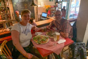 Da wir den ganzen Tag über noch nichts weiter gegessen haben, sind wir ziemlich hungrig und gehen erstmal zu Mama Gaucha. In diesem echt urigen Laden gibt es superleckere Pizza und wir vertilgen eine mit Honig-Senf-Hühnchen und eine mit Lamm.