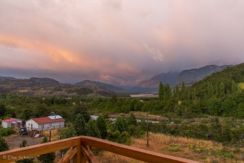 Also bleiben wir einfach erstmal faul im Bett liegen. Von diesem aus könnten wir eigentlich direkt die tolle Sicht auf den Cerro Castillo genießen, wenn es denn eine Sicht durch den grauen Schleier hindurch geben würde. So aber betreiben wir einfach noch ein bisschen Augenpflege und Andreas verzichtet angesichts des Wetters sogar auf seine Laufrunde…