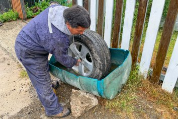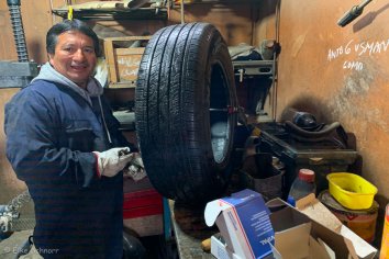 Der Vulkanisierer ist bereits bei der Arbeit und wir müssen kurz warten, bis er das Paar vor uns mit seinen beiden kaputten Reifen abgefertigt hat. Dann geht es aber total fix und es ist spannend zuzuschauen. Nach nur 15 Minuten ist unser Reifen wieder einsatzbereit und der Spaß kostet gerade mal 8.000 CLP.