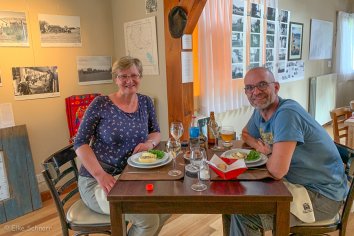 Wir bleiben eine Stunde und erfreuen uns an der tollen Szenerie, dann fahren wir wieder in den Ort zurück.