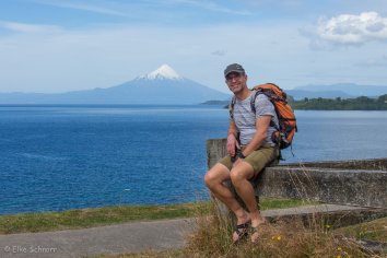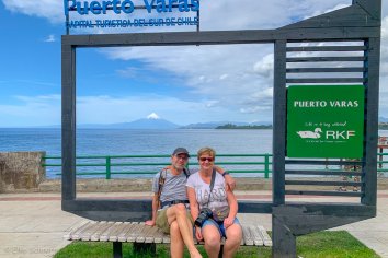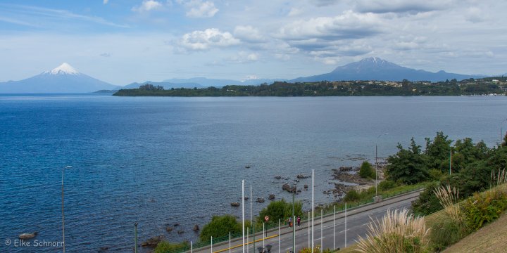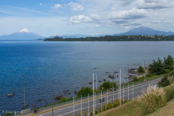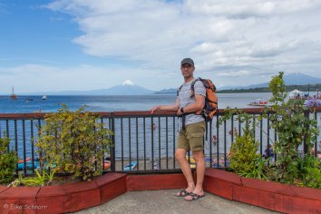 Puerto Varas gefällt uns mit seiner tollen Lage, der gemütlichen Kleinstadt-Atmosphäre und dem adretten Stadtbild richtig gut. Wir laufen an der Küstenpromenade entlang und erfreuen uns an dem tollen Panorama — dem tiefblauen Llanquihué See und den Bilderbuch-Vulkanen Calbuco, Osorno und Tronador, die sich heute wunderschön vor einem strahlend blauen Himmel für uns präsentieren.