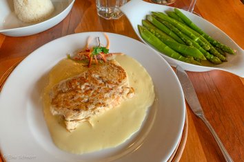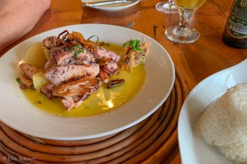Zum Abendessen gehen wir später auf Empfehlung von Susana in’s Casavaldés — ein Fischrestaurant mit tollem Blick auf den See. Andreas nimmt Octopus und für mich gibt es eine mit Krabben gefüllte Forelle. Als Vorspeise teilen wir uns noch eine Portion Garnelen. Alles ist sehr lecker, aber auf den Nachtisch verzichten wir — den hatten wir ja heute schon in Kuchenform vorgezogen