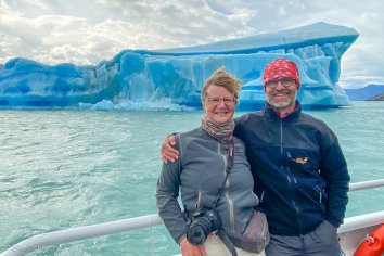Unsere Susi darf sich in den nächsten beiden Tagen wieder etwas ausruhen, denn wir haben hier in El Calafate zwei Tagesausflüge gebucht. Heute steht eine Bootsfahrt über den Lago Argentino zur Estancia Cristina auf dem Programm.