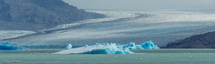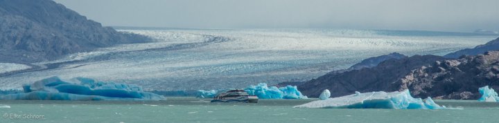 Als alle ihre Selfies mit den Eisbergen im Kasten haben, gibt es noch einen kurzen Abstecher zum Upsala Gletscher, den wir allerdings nur aus recht großer Entfernung zu sehen bekommen.